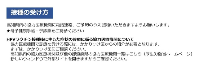 子宮頸がん予防のためのHPVワクチンの公費による接種を提供しています。